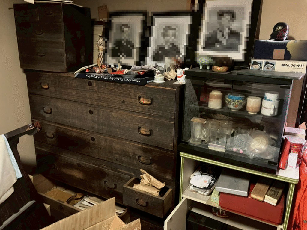 依頼主の叔母さまがお亡くなりになった事に伴い住んでいた家の物品を片付けて欲しいとの依頼をいただきました。5LDKの戸建てに50年程お一人で暮らしていたので非常に物量が多く、収納スペースや物置にギッシリと様々な物が収納されていました。